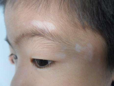 而单纯糠疹是儿童中比较常见的一种皮肤病,常分布于面部,个别可出现在颈部、上臂、背部或躯干,是一种大小不等的圆形或椭圆形淡红色斑疹,一般为硬币大小,表面干燥,上面覆盖有少许灰白色细小的鳞屑,看上去较周围的肤色稍浅。