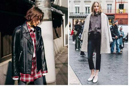 红色格纹虽然好看复古,但试过的女生都知道是非常难单穿的,因为宽大的版型潇洒不足就会有些乡土,而紧身的版型精致不够就会稍显艳俗。但是作为内搭却十分出彩,将暗沉的秋冬都加亮不少。白色凸显作为最内层的搭配提高亮度,红色格纹将露出对襟和下摆,黑皮外套酷帅有型,搭配上细质choker充满朋克风。