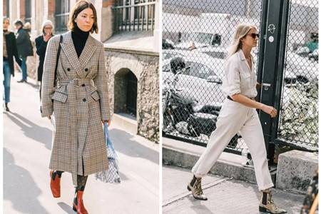 在靴筒的选择上也十分有诀窍,袜靴虽美,对于腿部的要求比较大,脚踝和小腿不够细的女生穿起来就会显得更加粗壮。大部分女生选择靴口稍微宽松的鞋子比较百搭,在脚踝和鞋筒之间留出一点空隔,可以让小腿显得更有有余而不会紧绷。空余度以一个手指为量度比较合适,过于追求个性的宽大鞋筒同样会将腿型拉宽变短。即使是偏中性的穿搭也会显得不够帅气。