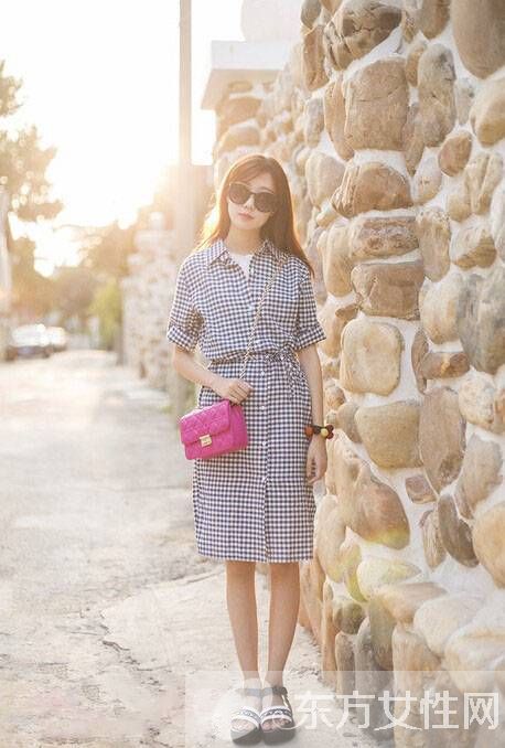 可以一衣多穿的长款小格子衬衫,可以当文艺的裙子穿,及膝的长度,更好遮住胖胖的上半身,很显瘦,搭配的凉鞋,很复古~