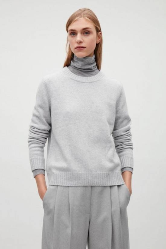COS Essentials秋季新品,无论是长裤高腰处的细微褶皱,小洋装侧面肩膀处的精致排扣,衣服胸前的撞色口袋,立体感十足的领肩处等等,每一处的小细节处理,让你看到的可不仅是一件简单的套头毛衣和简单针织衫,这些采用高级柔软的纯色诺羊毛制作而成,让整件衣物质感十足。