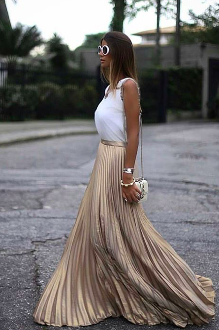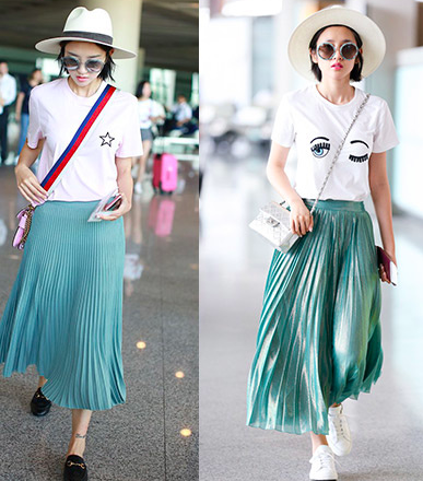 喜欢酷酷帅帅风的,可以搭配冷色系,银色,黑色,白色,这种偏酷一点的颜色。 娱乐圈中还有好多穿百褶裙的女神们,我挑选了比较典型的。