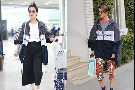 除了韩雪以外,也有大批的明星喜欢上了这一种非常有青春活力的衣服。海清的机场袖一向是非常舒适简单少有故意凹造型的时候。白色T恤搭配黑色阔腿裤,外搭配上一件宽大的防风衣,灰蓝白三色块经典搭配,手臂条纹打造线条,英文字母花纹清爽干练。Ruby Rose的打扮则更加街头。用防风衣搭配彩色紧身裤和运动鞋,运动感十足,灰红色T恤也比较有中性气质。