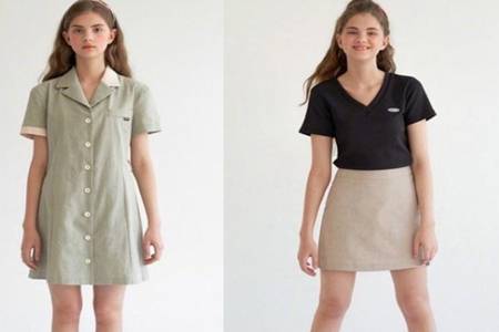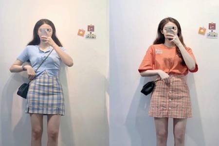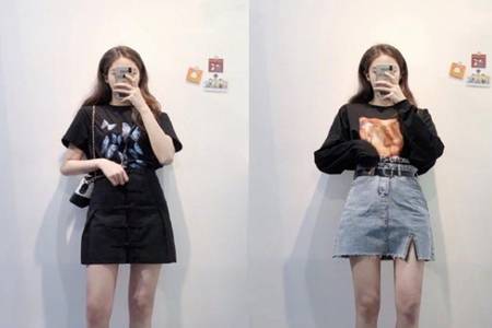 其实,T恤+半身裙的搭配会显得人更青春靓丽些,非常适合年轻的女生,譬如:黑色V领T恤,搭配一条杏色短裙,简约利落,大方得体,清新脱俗,俏皮活泼、一深一浅的色彩能够打破沉闷,显得更具有气质。