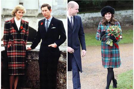 格纹是一款非常传统的欧式美丽,它的配色就充满了圣诞的味道,所以几乎每一位英王妃都一定需要能够驾驭它。美丽的戴安娜王妃身着一套经典黑蓝长西装,宽大的平肩,收窄的细腰和特别的斜形口袋都将她的华贵凸显出来。白色中领衬衫作为内搭,绽放着一缕清新的亮色挑。大珍珠耳环雍容不已,和发色极为相近,精致不突兀十分典雅。凯特王妃则是以红绿格纹出现。大绒帽极富特色,带来温暖和优雅的气质。黑色打底袜显得庄重,延长细腿长直的视觉效果也非常好。