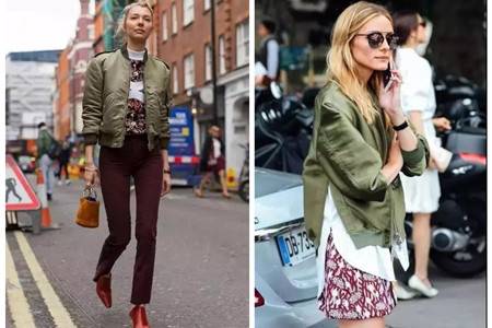 绿色夹克选择光面的款式会更加有质感。红色花纹的短裙搭配下摆弧形的白色衬衫,配和内搭选择开叉的夹克能够将层次感完全体现出来。夹克十分轻薄,墨绿色看起来清新盈动。更加厚实的夹克衫就更加帅气,内搭小领花纹凸显时尚满分,直版的夹克显得非常利落,带有英气。深红色西裤搭配艳红的光面皮鞋,将红配绿提升成另外一种时尚感。焦糖色的水桶小包圆形手环,整体搭配显得简单迷人