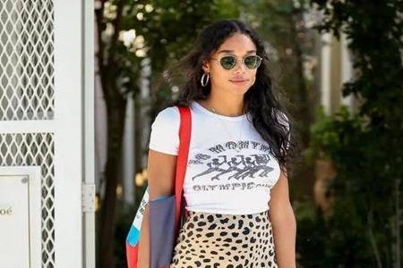 要是选择豹纹元素设计款迷笛裙,那么轻柔休闲之际,还会散发出飘逸之美,特别是脚踩白色运动鞋,在清新中略带一丝丝精巧,增加了柔情田园风格,显得恬静又唯美。