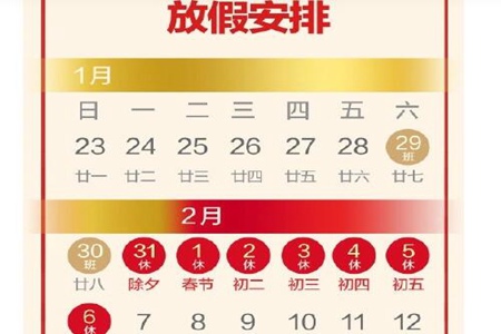 2022春节放假调休安排,1月29与30连上7天班后连休7天
