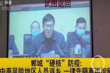 近日,一段河南省周口市郸城县县长董鸿关于对返乡人员“政策”的视频激起热议。视频显示,董鸿在相干会议上说:“你只要返回,先隔离再拘留。”随后,针对此事董鸿回应媒体采访时称:上述视频经过剪辑,不真实,剪辑失踪了“不听劝阻,歹意返乡”等内容。