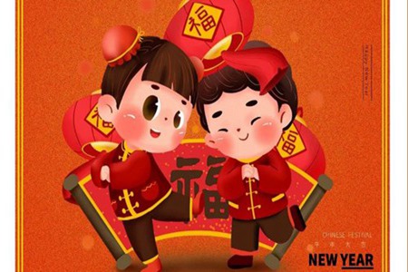 新年到,眉飞色舞很热烈;贴对联,放烟花,安然富贵齐抵家;喝琼浆,唱颂歌,传递喜气万家欢;祝贺你,新年好,全家团圆乐逍遥。