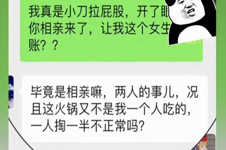 落座后,南方风雅说“随便点”,结果饭局竣事破耗了一千多,其时男方并没有显示出甚么而是很快地把账结了。可是,王密斯刚回抵家,男方就发来信息要求他支付一半的饭钱。女方很惊讶,马上绝不虚心肠泄漏显示已前后相亲七八次,从没有哪个男的事后向她要钱,立马就将对方拉黑了。