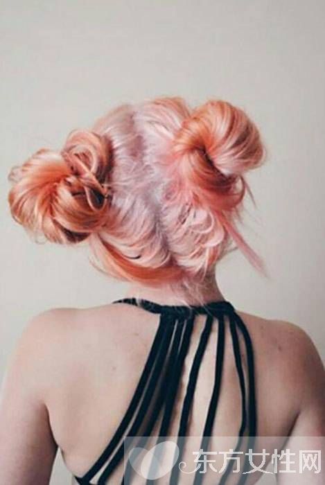回味童真稚趣:粉色发色最稚气的造型是丸子头,而双丸子更是能将你的未泯童心体现无余!
