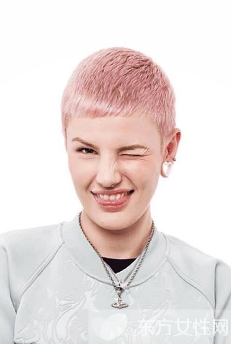寸头短发拒绝暗沉:粉色不会太扎眼,但是又足够生动,剪了寸头短发本来就够时尚了,加点粉色无疑是锦上添花!