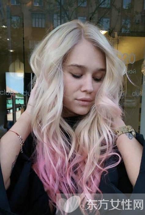 浪漫粉卷:卷发的发尾染上一点粉色,时尚又梦幻!夏天就是要拒绝单调,在这个派对季,粉色元素还能让你增加桃花运喔!