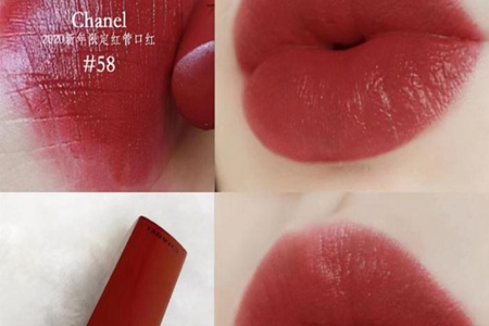 #58质地顺滑,滋润滋润度、显色度极高,上嘴不显唇纹、不拔干,色彩自然红棕还带一点玫色调,可以说是熟透了的番茄红,乃至比番茄红会更浓郁一些。在喷香奈儿浩大好看的色彩傍边,是最经典好看的色号之一,它完全不挑皮,也不会太过老气,色彩平淡适中,平常百搭,上班用、蹦迪用、逛街用都妥妥的,超级合适黄皮女生!