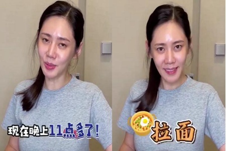 视频中,秋瓷炫穿着宽松的灰色t恤十分随便,还扎着马尾素颜出镜,不知道是不是是灯光的缘由,脸上看起来出油对比显着。其时秋瓷炫吃起面来也是毫无形象经管可言,夹起一筷子面条就往嘴里送,而且还用泡菜将拉面裹住一路吃下,看来故乡的味觉照样没有改变。