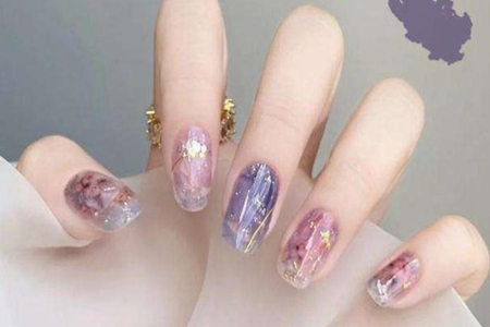 多色迷彩款美甲,主如果每个指甲的色彩都不沟通,以粉色打底,再到场蓝色、紫色等色彩点缀,最后到场金色雀斑点缀,这样出来的结果就可以凸显出多彩的迷彩色。而由于到场金色点缀的原因,是以会显得迥殊贵气,立体感也迥殊强烈!