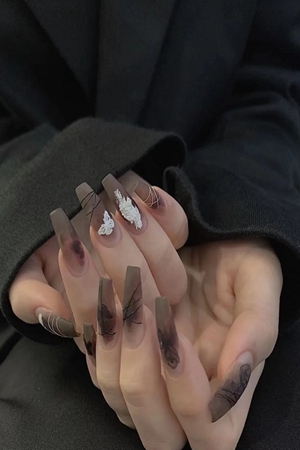2、 白色的胡蝶在暗黑的底色中显得十分吸睛,黑色的细丝勾画了玫瑰的轮廓,多了份奇特的感受,复杂中又带了点高级感,拽姐们快get起来!