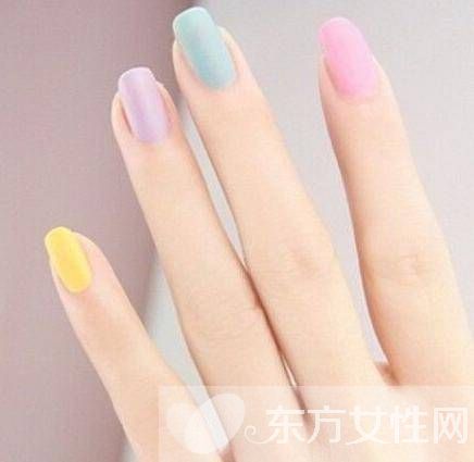 小清新彩虹美甲,糖果色淡淡的,如彩虹般,清新又唯美,适合年轻女生。