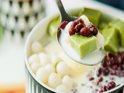 要准备的食材是烧仙草粉,芋圆,还有牛奶和蜜豆。第一步,需要将烧仙草粉用一点点的冷水化开搅拌,再把它倒入煮开的水里,同时搅拌煮到它沸腾,然后把它倒入一个较年夜较平的碗里,让其冷却到凝固以后可以切块。第二步,准备芋圆。把做好的芋圆放到滚烫的水里,煮熟煮沸,再将其进行过冷水,这是为了让它的口感加倍的Q弹爽滑。第三步,准备一个喜好的碗,切块好的烧仙草放进去,把过水好的芋圆也放进去,再加上蜜豆,倒入牛奶便可以食用了。