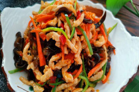 鱼喷香肉丝:猪里脊肉半斤、水发木耳1小碗、胡萝卜半根、尖椒2个、油盐适当、泡椒1汤勺、葱1段、姜2片、年夜蒜2瓣、白糖1汤勺、淀粉1.5汤勺、米醋2汤勺、酱油2汤勺、料酒半汤勺、鸡精1茶匙··