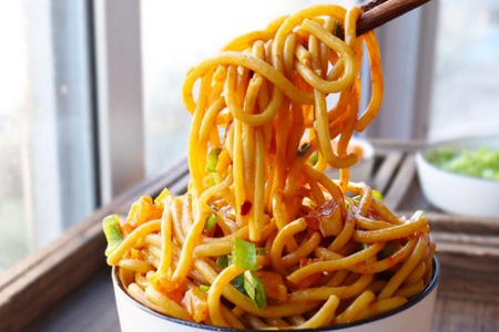面条事前煮熟,过冷和过油后,再淋上油、醋、辣椒油菜等配料,吃时面条纤细爽滑有筋道、酱汁喷香浓味美,色泽黄而油润,喷香而鲜美,有种很爽口的辣味,诱人食欲。