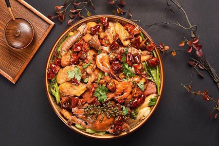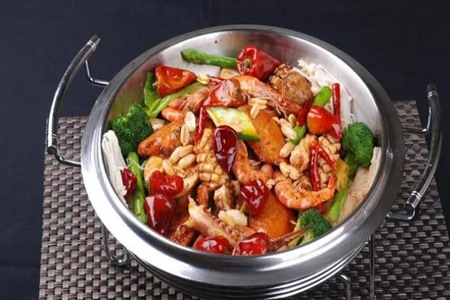 麻辣喷香锅,源于重庆缙云山土家风味,是当地老庶平易近的家常做法,以麻、辣、喷香、混一锅为特点。做的时刻需要用到两只锅,个中一只锅把所有要放入麻辣喷香锅的器械放入,到场热水煮熟,所以又将该锅称之为“锅”。