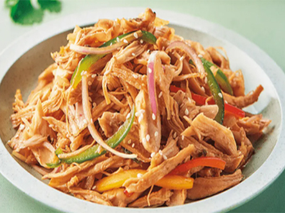 这算是炎天里必吃的凉菜,“爽辣”是它的代名词。照旧是先准备妥食材,鸡腿肉、蒜、青红辣椒、小葱、白芝麻、辣椒面、生抽、白糖、蚝油、藤椒油(或花椒油替换)、盐、生姜、料酒、花椒、喷香菜和食用油。接下来是做法,将鸡肉腿洗清洁下锅,加水、小葱、生姜、料酒、花椒,这一部分很重要,是要去腥。煮熟以后,放进凉水里浸泡5分钟。然后泡完今后,便可以把鸡腿肉撕成丝,一会儿备用。下面就是调酱汁,把青红辣椒切丝儿、白芝麻、小葱、蒜泥和辣椒面拌在一路,放进碗里,然后把食用油热起以后,倒入碗里,激起喷香料味。再到场2勺酱油生抽和花椒油,1勺蚝油,适当的盐和少量的白糖,然后搅拌平均以后,便可以淋在撕好的鸡肉丝上面,拌拌匀,喜好吃喷香菜的人可以加上喷香菜碎,或花生碎。