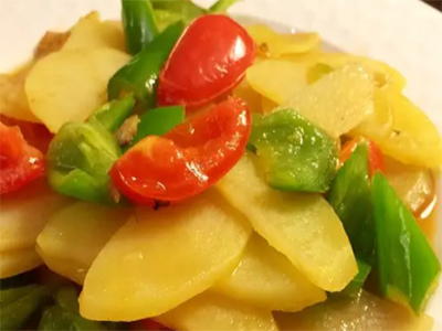 首先需要备好食材,食材离别是青椒、素食香肠和土豆。将素食香肠和土豆切成薄片,青椒切的年夜片一些;需要对切好的土豆进行焯水,焯水可让土豆更随便马虎熟,同时还可以去除土豆自己的淀粉,避免一会儿下过翻炒出现粘锅。焯完水的土豆片捞出备用。接着,就是要锅里下油,油温合适,可以将青椒和香肠下过,爆火翻炒2~3分钟,看到香肠边边微焦,便可以将焯水过的土豆片下锅一路继续炒。炒到可以看见土豆片由正本浅黄酿成焦黄色,便可以入手下手下调料了。蚝油和生抽酱油各1勺、老抽只是上色,仅需要1/2勺,到场适当的盐,然后翻炒平均,便可以出锅了。