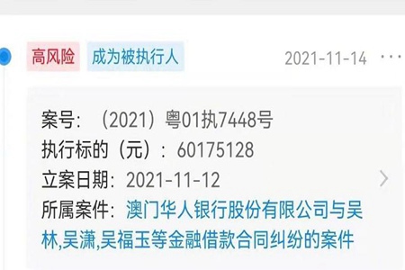 据企查查显示,吴亦凡表哥吴林等新增被履行人信息,履行标的60175128元,联系关系案件为吴林、吴潇等与银行的金融借钱合同纠葛,与此同时本案被履行人还包含吴继刚、吴福玉、广东万迪公路工程有限公司,个中吴继刚为广东万迪公路工程有限公司法定代表人。所以,从现有信息来看,还没法肯定与吴亦凡或吴亦凡工作室有关。