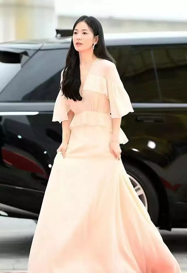 值得注意的是,在大的潮流环境当中,总是喜欢用喜庆的颜色或者是亮色系去强调视觉感。而宋慧乔身上所穿的浅颜色的裙装可以保证质感呈现的同时,也不会让有保守风格的裙子凸显年龄,反而激发出了优雅和得体感,这份保守发挥的恰到好处,与风格和本人的气质相辅相成。