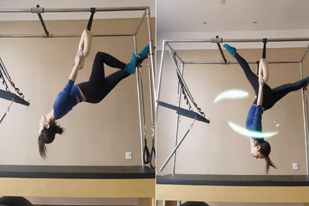 央视主持人李思思最新消息 练瑜伽空中倒立劈叉太卖力