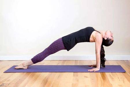 同样对锻炼手臂十分有效的是后仰支架式,有不少的女生在完成这个动作的时候会把全身的力量放在手掌上,导致手肘超伸姿势不稳定。双手反向支撑的时候不是脚跟点地,而是整个脚底踩实。收紧腰臀将肩膀打开。臀部是向上会形成一个漂亮的斜形,颈部放松平行地面看向天花板。