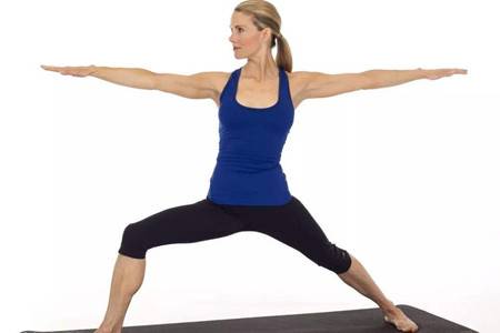 我们的腰肩疼痛不仅仅是因为上半身的肌肉紧张,脊椎一直延伸到臀部,尾椎酸痛和不受力会让女生在坐姿的过程中肩背有更大的压力。所以在运动中练习臀部,也可以让上半身在更加轻松。战士二式作为可以很好地带来臀部和肩部,让你的身体得到整体的伸展。体式首先从站立开始,右脚向右跨出一步弯曲膝盖,脚尖分别向前成为一个十字,脚掌踩实地面。双手平直伸起,头部转向右侧让身体保持稳定。然后将右腿收回换成另外一边。