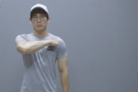 前两个动作只能说是缓解肩颈酸痛,让肌肉感觉到放松,起码不会那么紧张。但这一招就厉害了~可以帮助我们改善体态,改变溜肩的坏习惯~首先俯身,挺直后背,屈膝;伸出大拇指,手臂向外打开;这一步是锻炼到了我们的颈部三角区,还是有时候就做一做,不要偷懒。